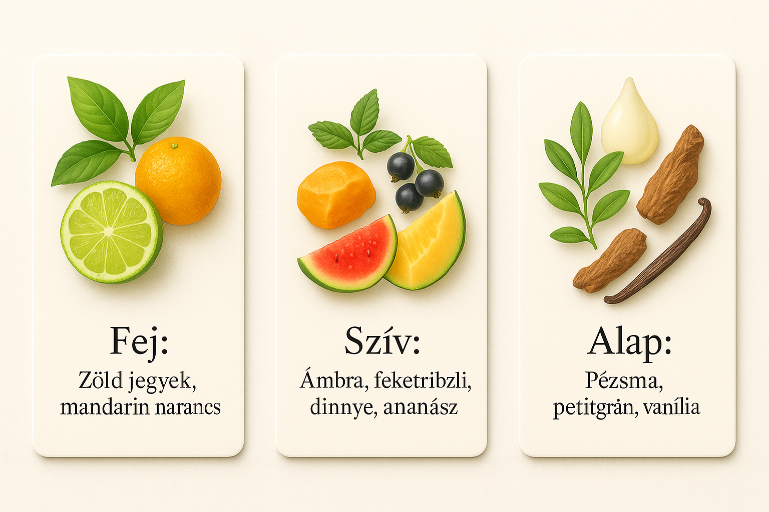 Fej Fej: bergamott, zöld jegyek, mandarin narancs