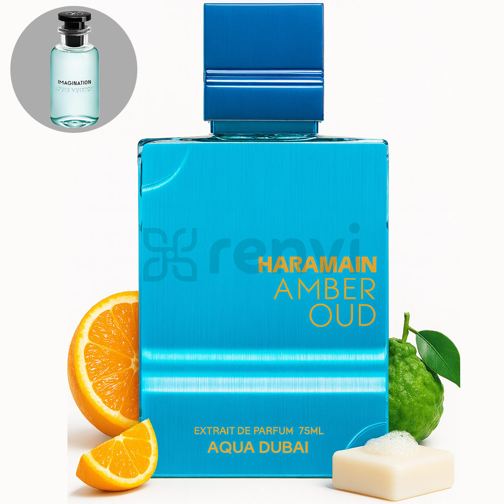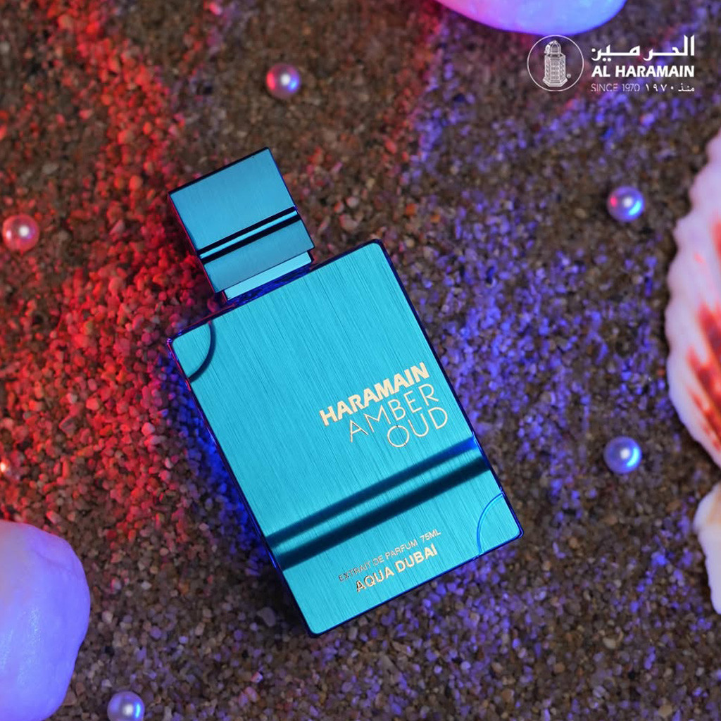 Az Al Haramain Amber Oud Aqua Dubai egy 2024-ben bemutatott uniszex parfüm, amely friss, citrusos és akvatikus illatával a nyári napok tökéletes kiegészítője. Az illat nyitányában a bergamott, a zöld jegyek és a mandarin narancs üdítő kombinációja érezhető, amely egy energikus és élénk kezdést biztosít. A szívjegyekben az ámbra, a feketeribizli, a dinnye és az ananász édes és gyümölcsös harmóniája bontakozik ki, míg az alapjegyekben a pézsmás, vaníliás és zöld tónusok – galbanum és petitgrain – mélyítik el az illatot. A parfüm hosszú élettartamú és erőteljesen terjed, így egész napos frissességet biztosít. Sokan a Louis Vuitton Imagination illatához hasonlítják, de elérhetőbb áron kínál hasonló élményt.