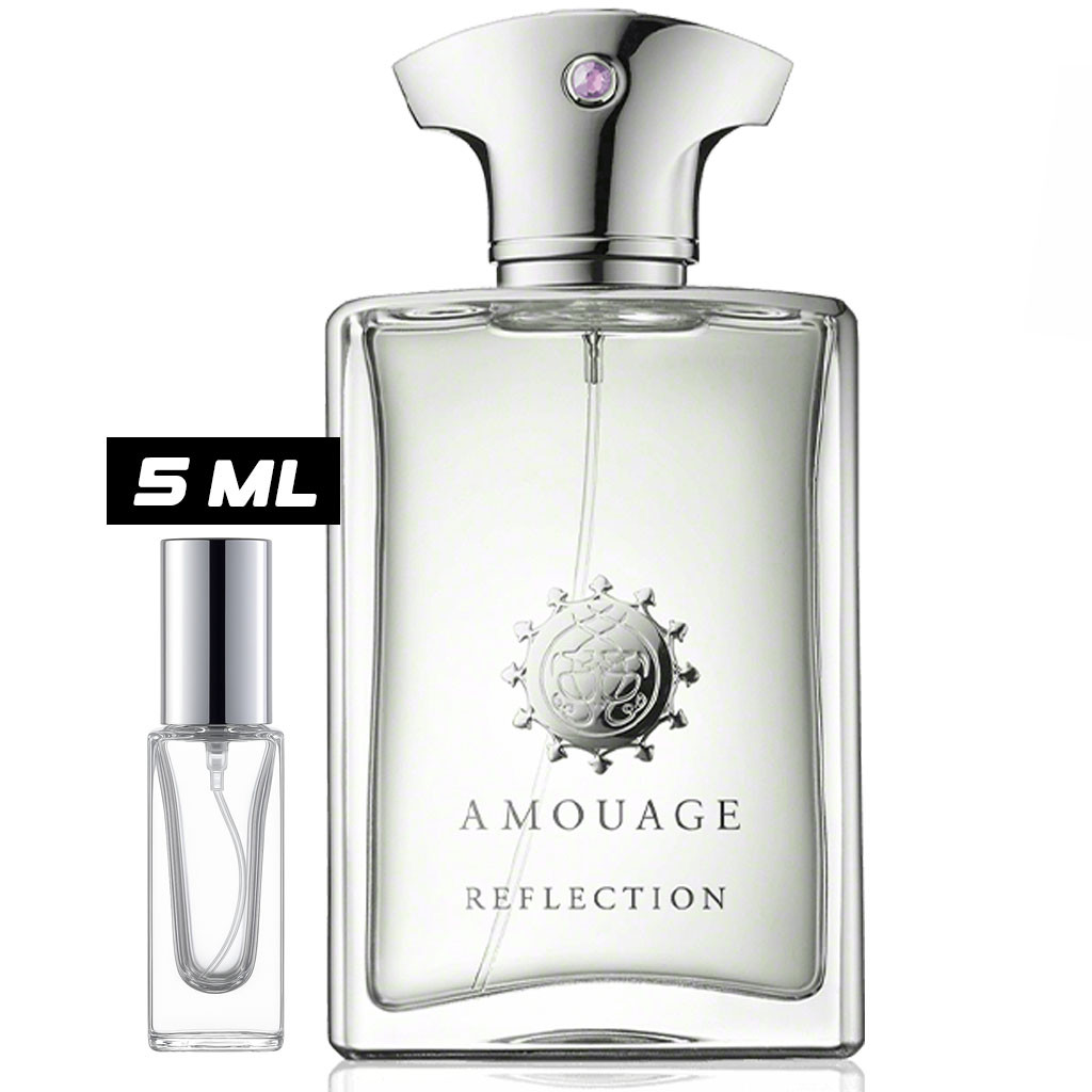 Az Amouage Reflection Man (férfi változat) egy kifinomult, elegáns és virágos-fás illatkompozíció, amit Lucas Sieuzac alkotott 2006-ban. Az első benyomásban friss, enyhén fűszeres jegyek jelennek meg, amelyek finoman vezetik be a gazdag virágos szívjegyekbe. A szívillat központjában az orrisz, jázmin, ylang-ylang és neroli egyensúlya áll, ami nagy mélységet és kifinomultságot kölcsönöz neki . A száraz alapérzetet meleg, fás–földes tónusok uralják: szantálfa, cédrus, vetiver és egy csipetnyi benzoin ad stabilitást és tartósságot.Ez a kompozíció egyszerre klasszikusan férfias és elegáns, mégis virágos karaktere miatt sokak szerint különösen bársonyos és kifinomult.