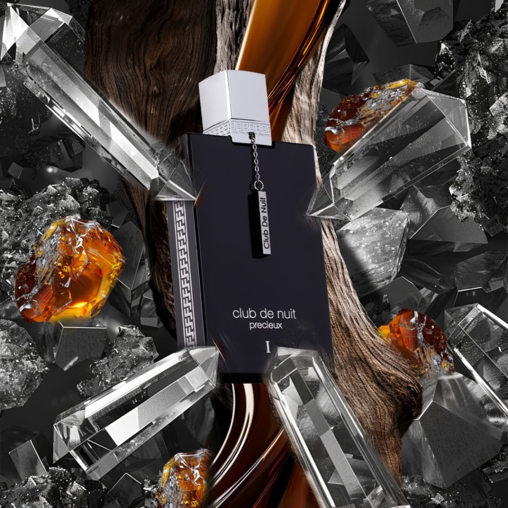 Club De Nuit Precieux egy uniszex, ambra‑fás illat, amelyet 2024-ben mutattak be. A nyitányban üde gyümölcsös‑fűszeres karakter bontakozik ki—ananasz, citrom, bergamot, körte, karamell, rózsaszín és fekete bors társaságában . A szívillatban virágos‑zöld elemek (jázmin, gyöngyvirág, ánizs, tölgymoha, fehér fa) jelennek meg, lágyan kiegyensúlyozva az üde nyitányt . A háttérben egy komplex, érzéki alapréteg alakul ki: cédrus, borostyán, vanília, fehér pézsma, bőr, pacsuli és ambroxán komponensekből . Ez az illat nagyvonalú, elegáns és tartós viseletnek ígérkezik, amely az ambra‑fás mélységével és üdén fűszeres frissességével egyszerre tiszteleg az Aventus‑stílus előtt.