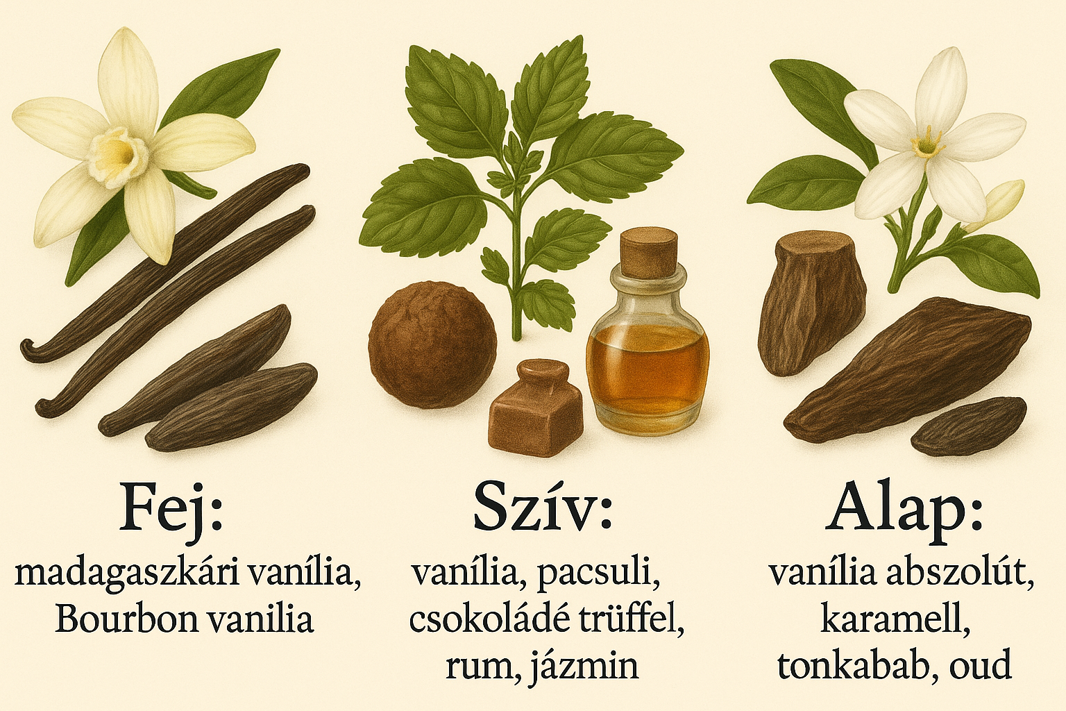 Alap: Vanília abszolút, karamell, tonkabab, oud