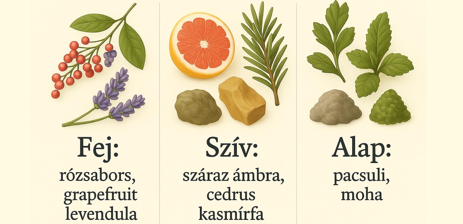 Fej: rózsabors, grapefruit, levendula