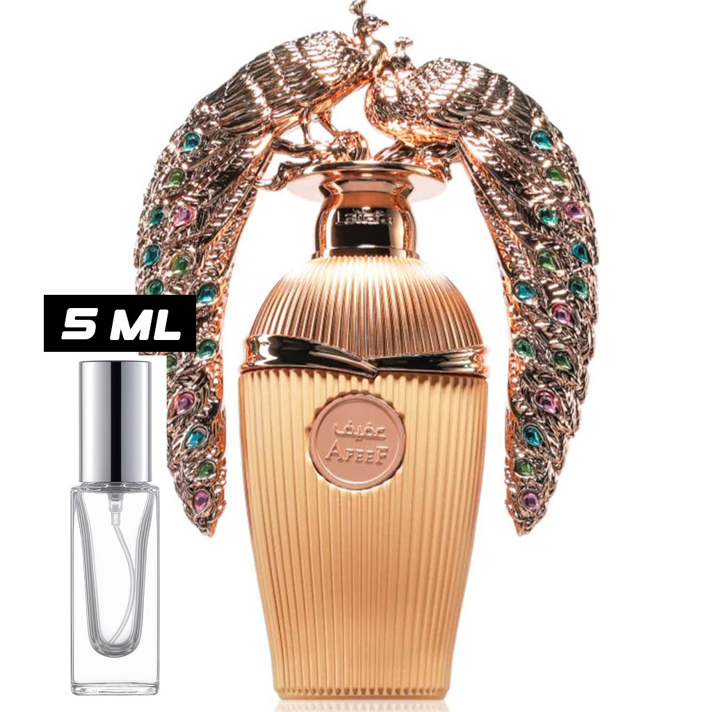 A Lattafa Afeef egy modern uniszex parfüm, amely friss gyümölcsösséggel és virágos eleganciával indít. A barack lédús édessége és a rózsabors fűszeres karaktere különleges nyitányt ad az illatnak. A szívjegyekben a jázmin, az ibolya, a narancsvirág és a tubarózsa lágyan bontakoznak ki, nőies és kifinomult hangulatot teremtve. Az alapban a praliné édes gourmand vonala keveredik a szantálfa krémes melegségével. Az ámbra és a pézsma mélységet és hosszan tartó eleganciát kölcsönöznek a kompozíciónak. Ez az illat egyszerre játékos, érzéki és elegáns.