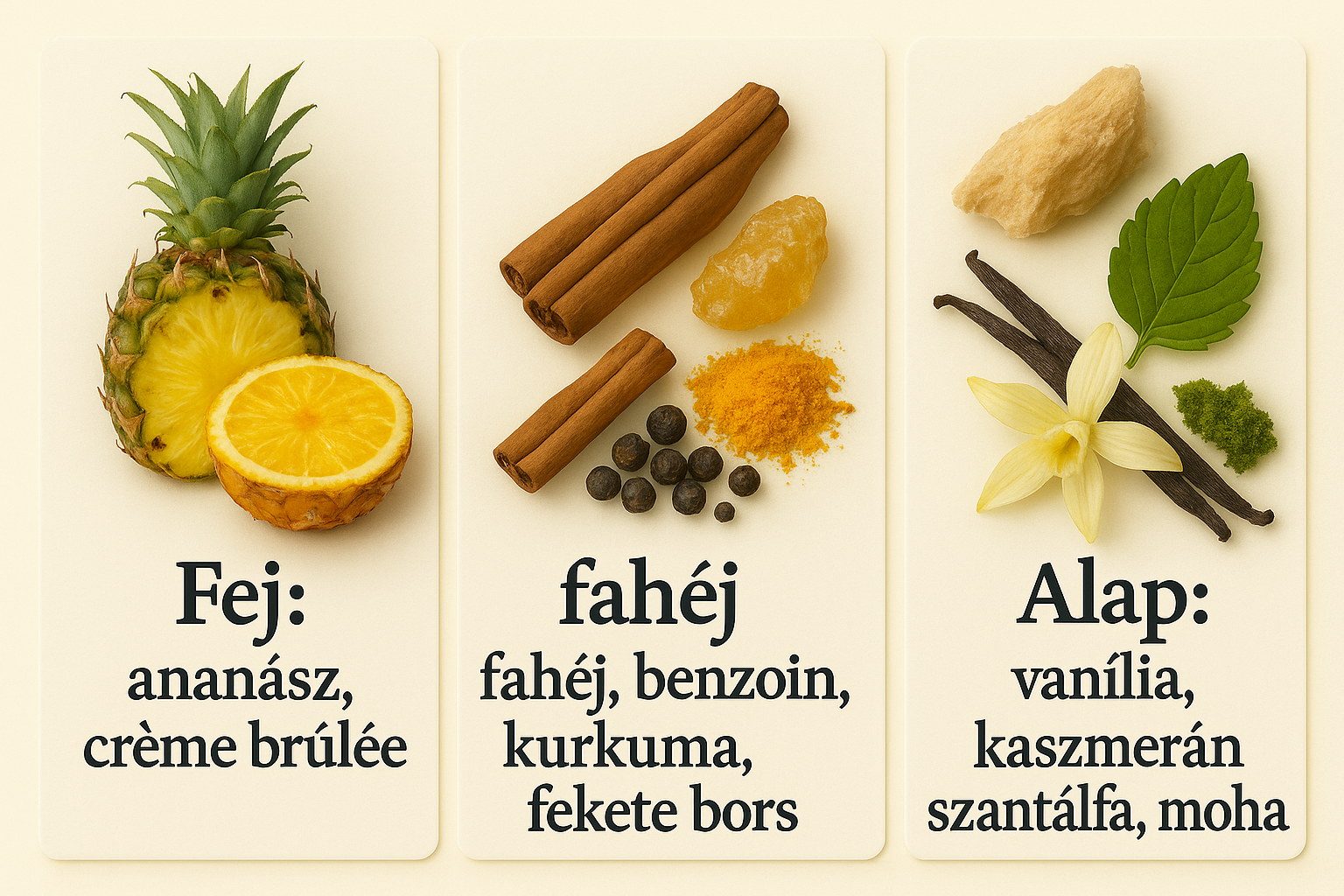 Szív: fahéj, benzoin, kurkuma, fekete bors