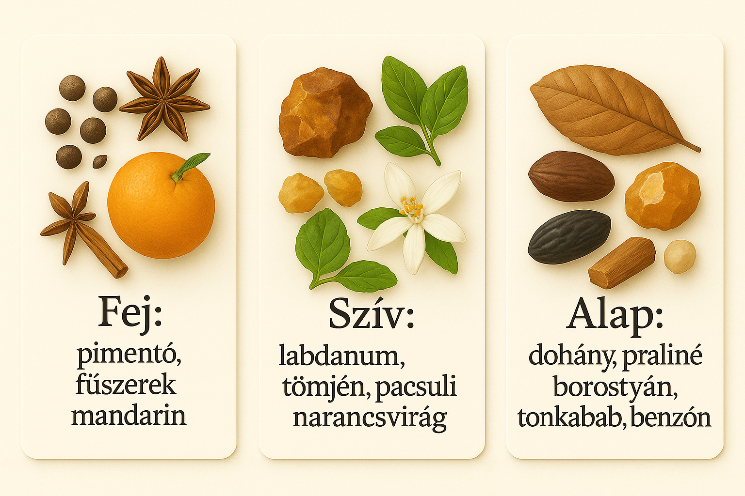 Fej: pimentó, fűszerek, mandarin