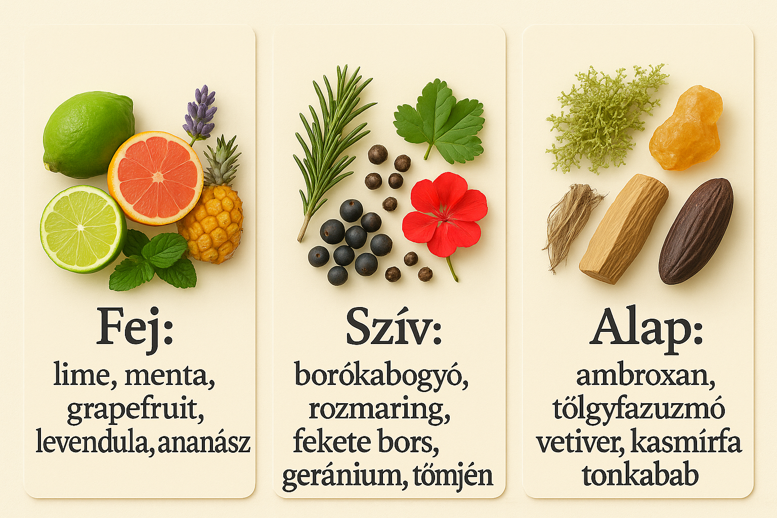 Alap: ambroxan, tölgyfazuzmó, vetiver, kasmírfa, tonkabab