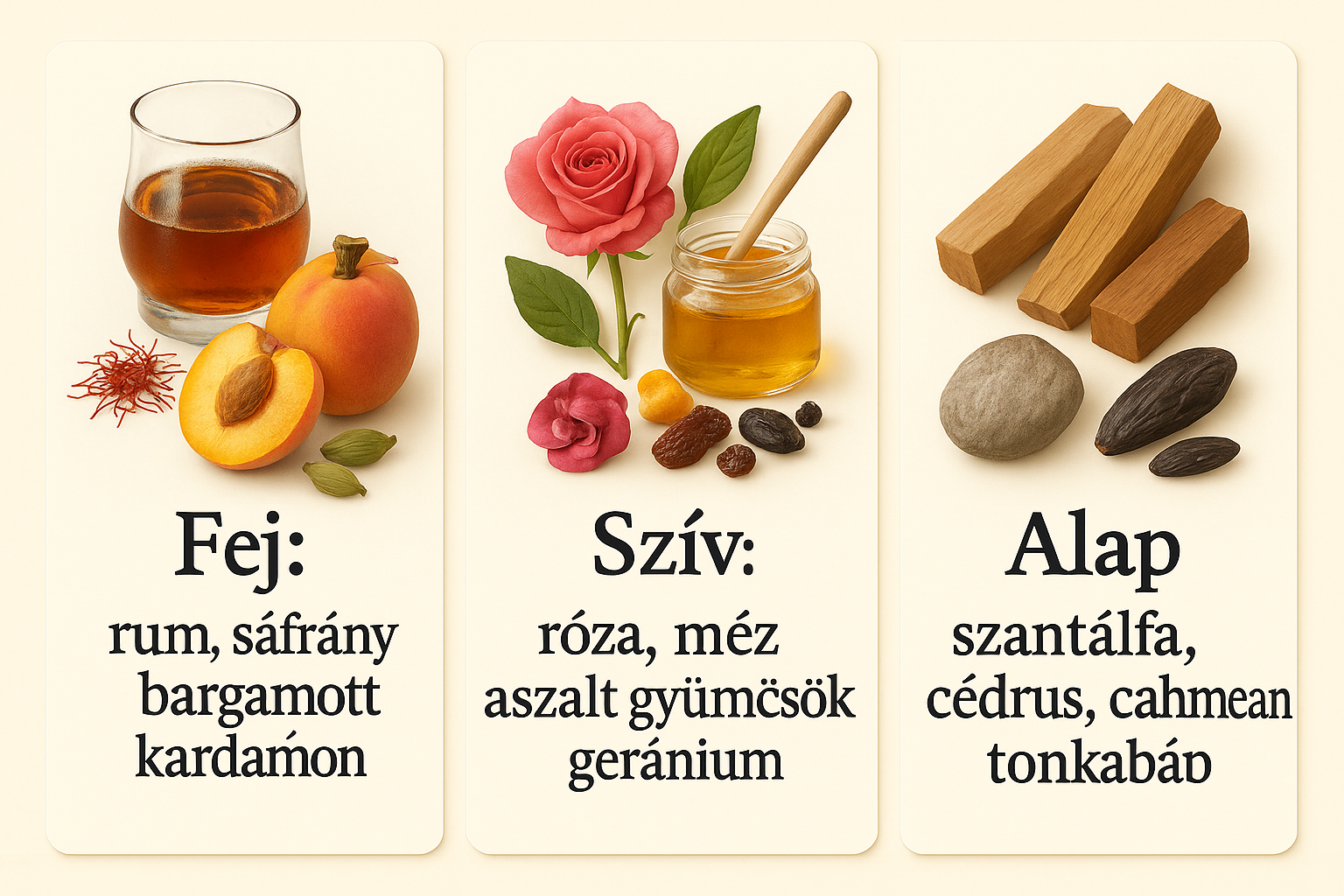 Fej: rum, sáfrány, barack, kardamon