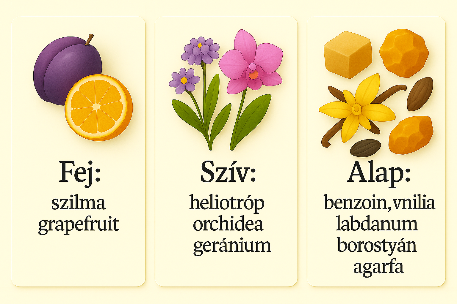 Alap: Benzoin, vanília, labdanum, borostyán, tonkabab, agarfa (oud)