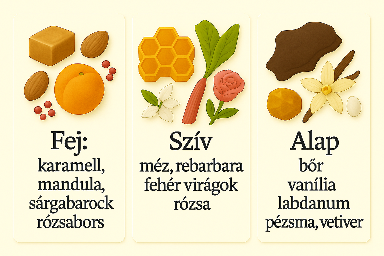 Fej: karamell, mandula, sárgabarack, rózsabors