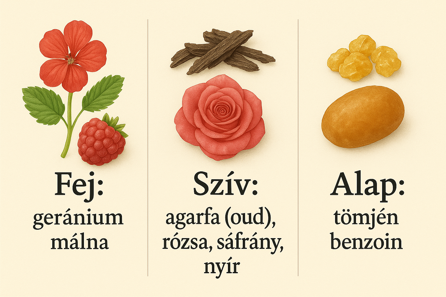 Szív: Agarfa (Oud), Rózsa, Sáfrány, Nyír