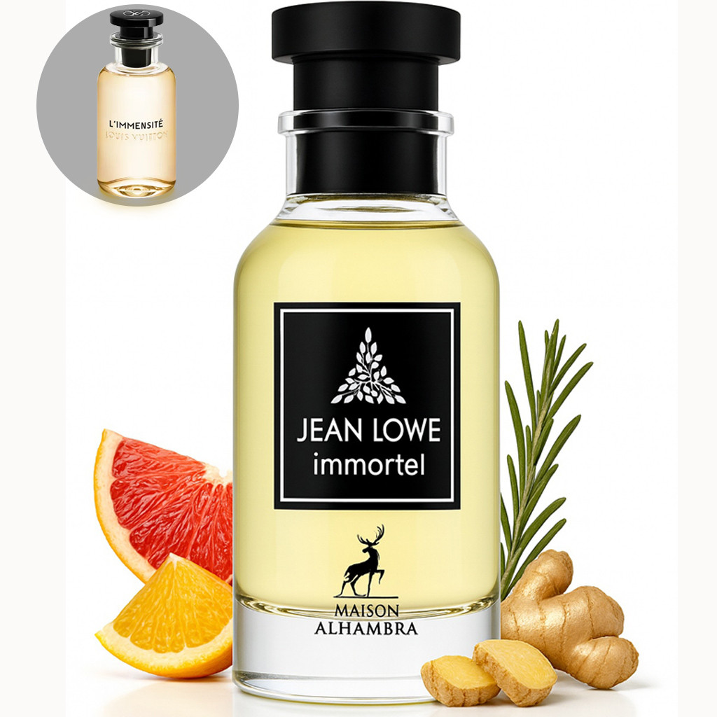Az Maison Alhambra Jean Lowe Immortel élénk, férfias illat, amely 2023-as megjelenése óta elképesztően népszerű lett. Gyömbérrel és citrusos jegyekkel nyit, ezt követi egy friss, vízi és fűszeres középrész, végül ambroxan, pézsmás ámbra és labdanum mélyíti az illatot. Az illat első perceiben a gyömbér és grapefruit robbanása könnyedén ragadja meg a figyelmet, majd a borostyános-ambroxanos szárazult folytatás hosszan tartó férfias jelenlétet ad. A középrétegben a rozmaring és zsálya fűszeres zöldességet hoz, ami kellemesen kiegyensúlyozza a karaktert. Összességében könnyen viselhető, friss, mégis elegáns, és meglepően tartós (akár 8 óra is lehet) – mindezt nagyon barátságos áron.