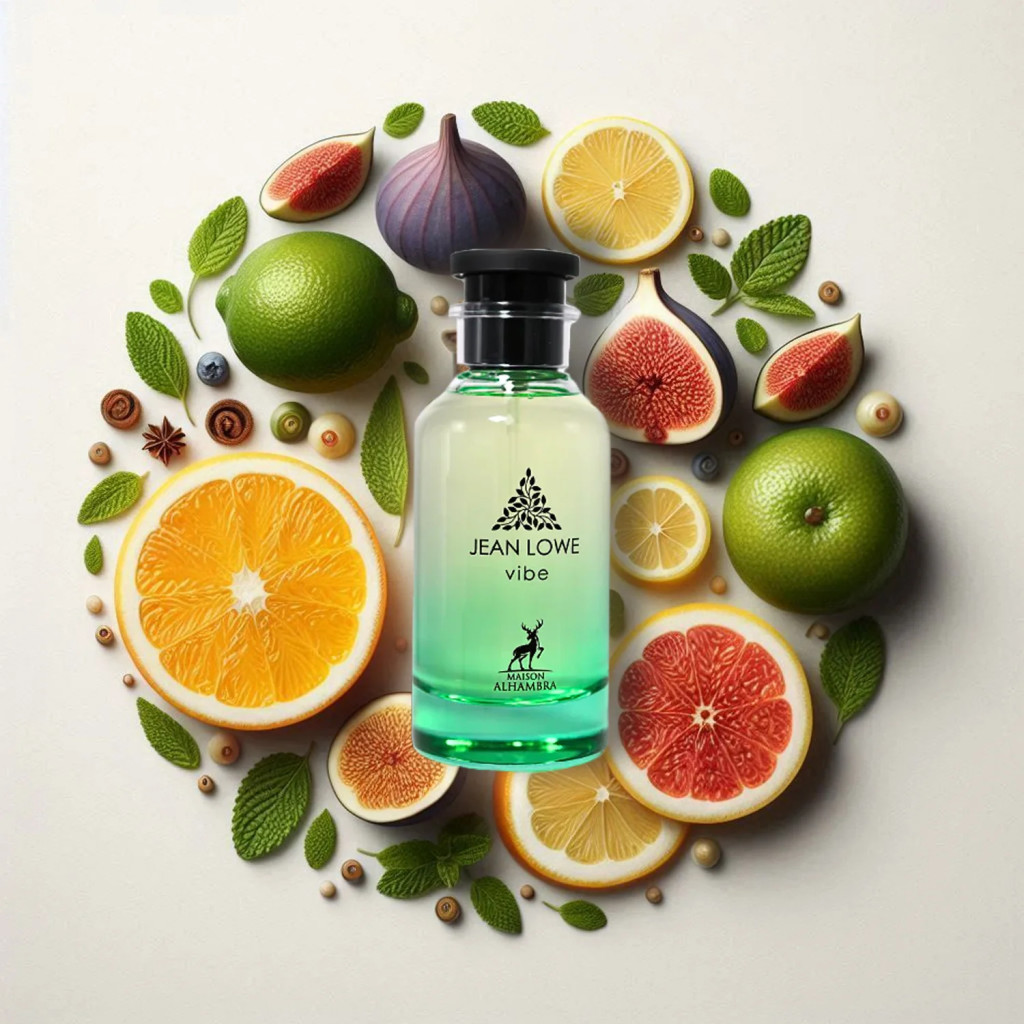 A Jean Lowe Vibe a Maison Alhambra uniszex parfümje, amely frissességet és kifinomultságot sugároz. Illatkompozíciója citrusos, gyümölcsös és fűszeres jegyek harmonikus egyensúlyát kínálja, ideális választás a melegebb hónapokra vagy mindennapi viseletre. A parfüm nyitánya élénk és üdítő, a szívjegyek lágyabb, gyümölcsös és virágos árnyalatokat hoznak, míg az alapjegyek meleg, édes és enyhén pézsmás karaktert adnak az illatnak