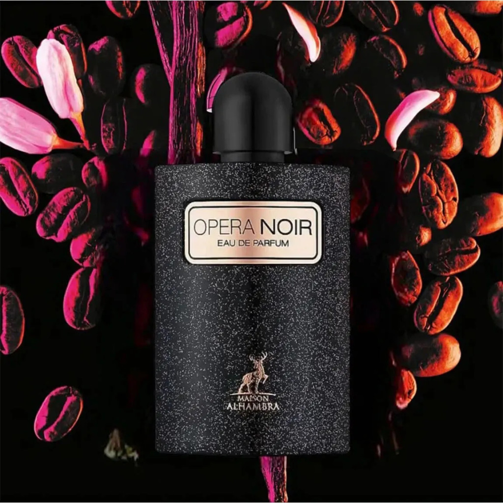 A Maison Alhambra Opera Noir egy érzéki és elegáns női parfüm, amelyet az Yves Saint Laurent Black Opium ihletett. Az illat nyitányában az édes körte és a rózsabors frissessége dominál. A szívjegyekben a jázmin virágos lágysága, a kávé mély aromája és a rózsabors fűszeressége keveredik. Az alapjegyekben a vanília édessége, a cédrusfa melegsége és a pacsuli földes tónusai érezhetők. Ez a kompozíció tökéletes választás esti alkalmakra, különösen az őszi és téli hónapokban.