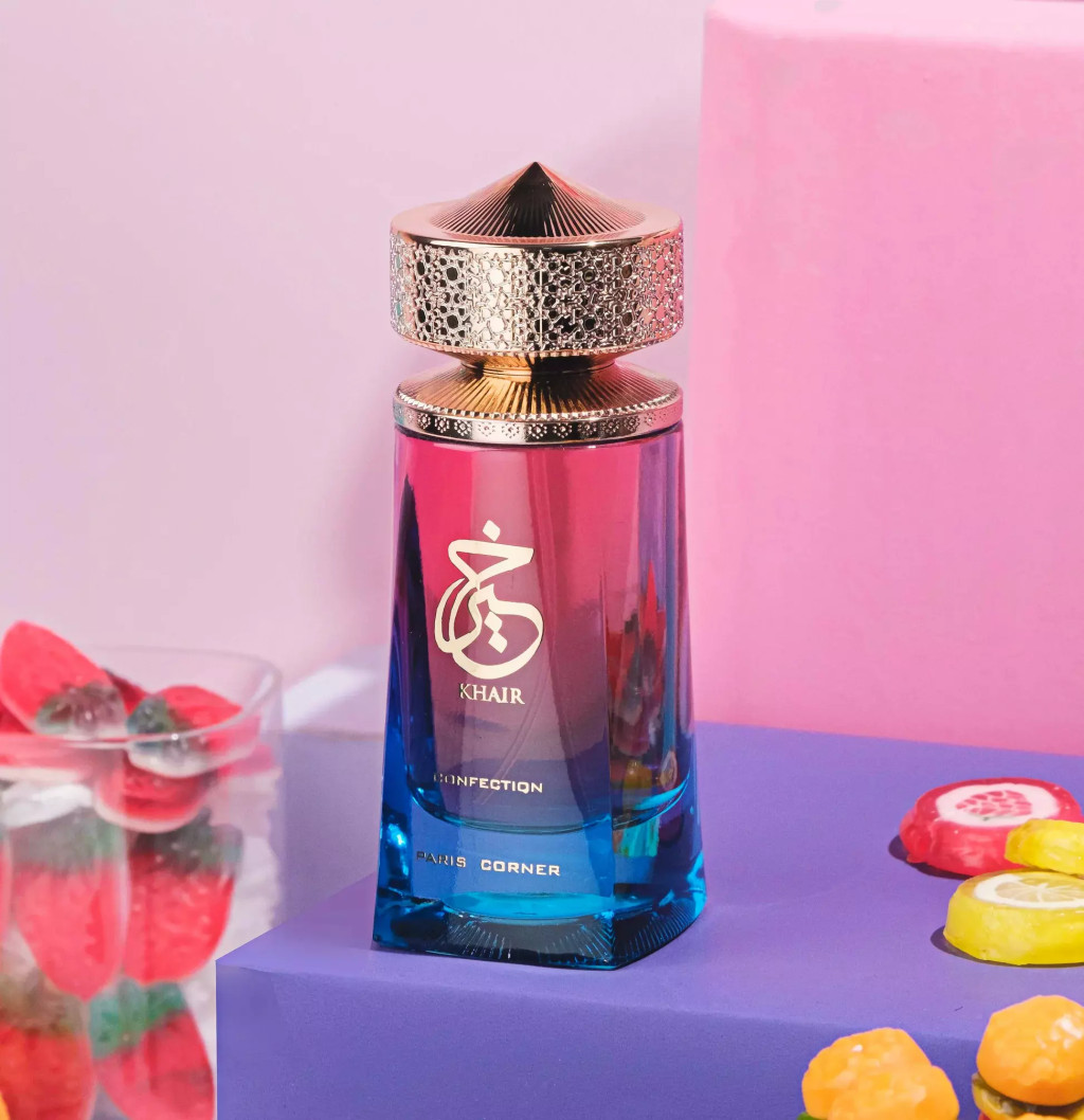 Paris Corner Khair Confection egy 2024-es gourmand illatnői parfüm, amely játékos és édességben gazdag hangulatot áraszt. A parfüm friss, gyümölcsös nyitánnyal indul – a körte és a tejszínhab könnyed, desszerteket idéző kombinációja azonnal magára vonja a figyelmet. Később virágos középrész tárul fel, ahol jázmin és ylang-ylang simogatja az érzékeket, miközben a cashmeran egy lágyan fás, meleg hátteret ad. A száraz-alapban vanília, pillecukor és szantálfa keveredik, édességet és krémes textúrát adva az illatnak, amely hosszabban is ott marad a ruhán vagy ruházaton.
