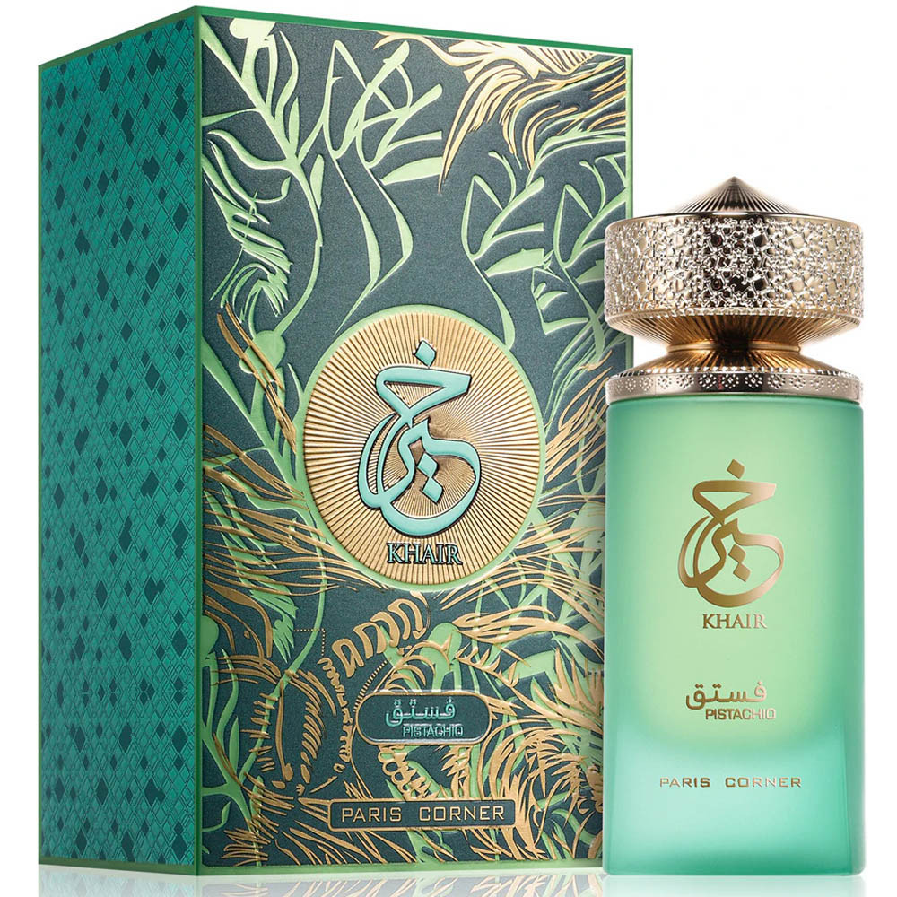 A Paris Corner Khair Pistachio egy uniszex, gourmand illat, amelyet 2023-ban mutattak be. Az illat nyitánya az olasz bergamott frissességét ötvözi a pisztáciafagylalt és a mogyoró krémes édességével, melyet a rum és a kardamom melegsége egészít ki. A szívjegyekben a gyümölcsös és virágos akkordok dominálnak: körte, fehér barack, málna, jázmin, fehér bazsarózsa és geránium alkotnak harmonikus elegyet. Az alapjegyekben a tejszínhab, mályvacukor, vattacukor és törökméz édes tónusai találkoznak a kakaó, cédrusfa, szantálfa és tonkabab mélységével, hosszan tartó, érzéki lecsengést biztosítva.