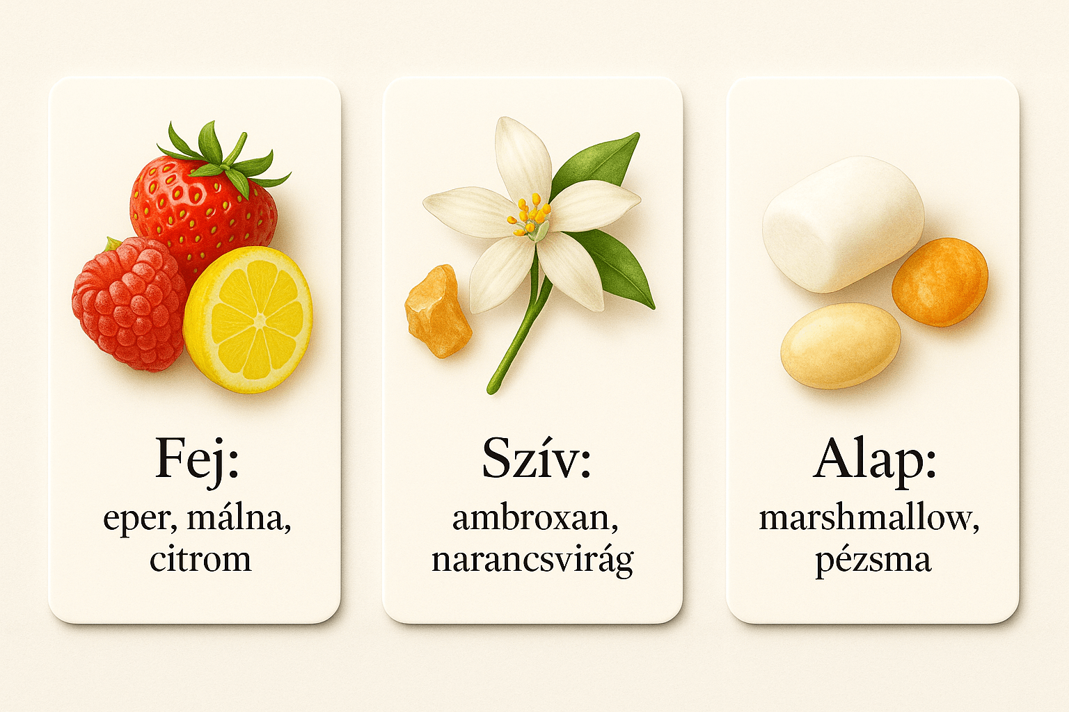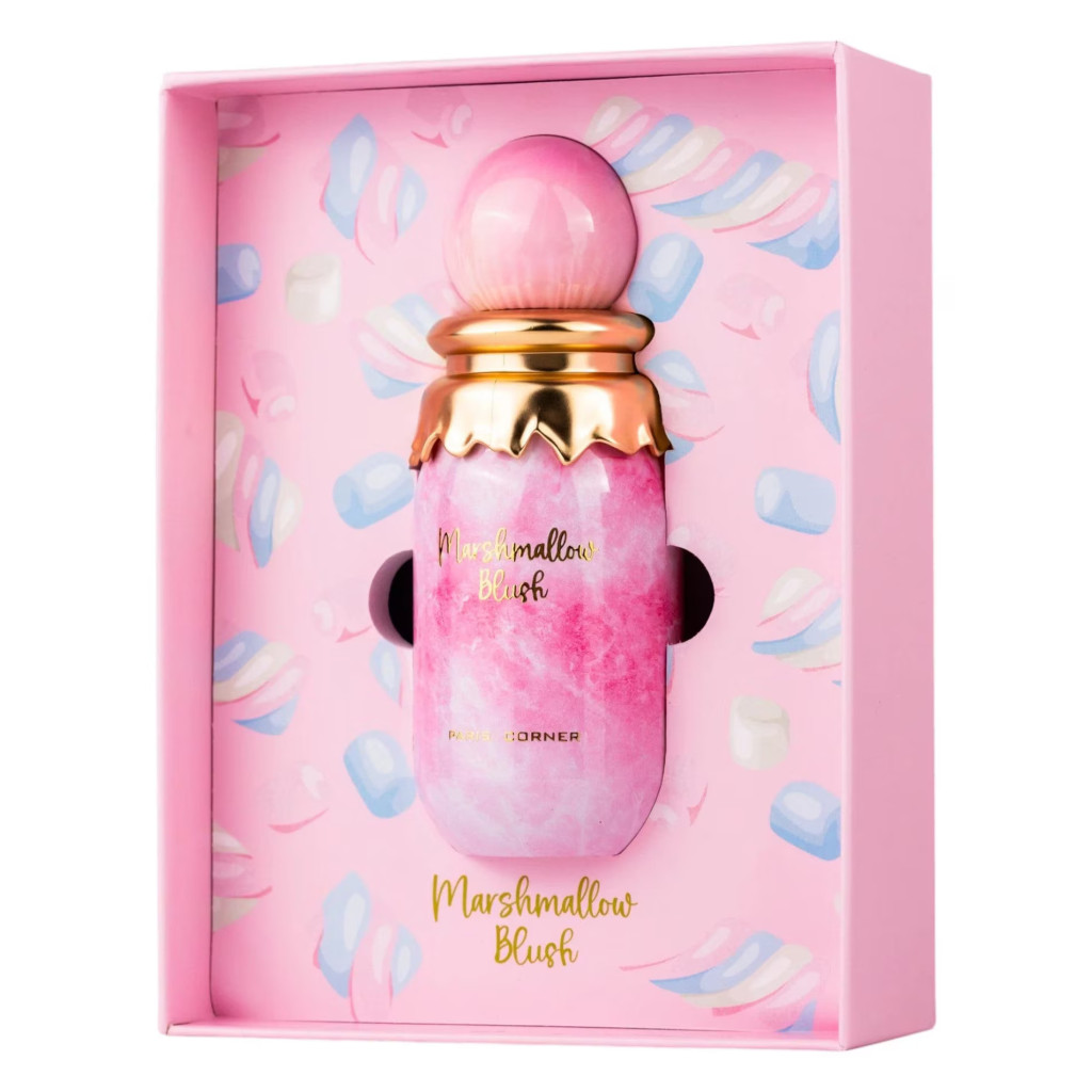 Marshmallow Blush egy bájos, játékos uniszex illat, amely a friss, gyümölcsös nyitány és az édes gourmand aláfestés harmóniájára épít. A parfüm a frissítő eper, málna és citrom üdítő triádjával nyit, majd a szívillatában az ambroxan és az narancsvirág finom, sugárzó fényével folytatódik. Az illat alapját a puha marshmallow, a krémes péksüteményekre emlékeztető cukorkás tónus és a meleg, bársonyos pézsma képezi, melyek együtt megnyugtató, szinte desszertszerű lezárást hoznak. Szellemessége és könnyed édessége miatt ideális választás mindennapi viseletre, különösen a tavaszi–nyári szezonban.