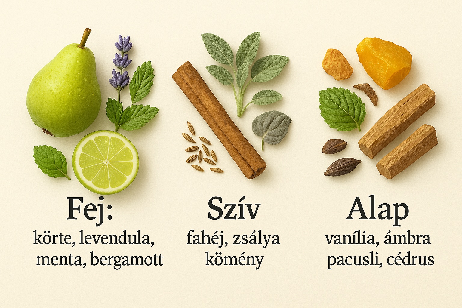 Szív: jázmin, rózsa, indonéz pacsuli, szantálfa