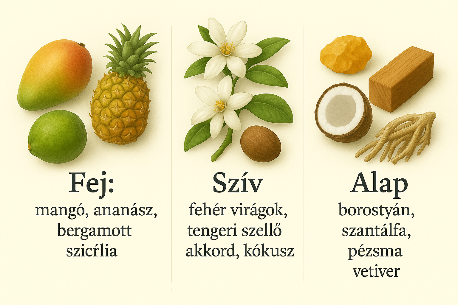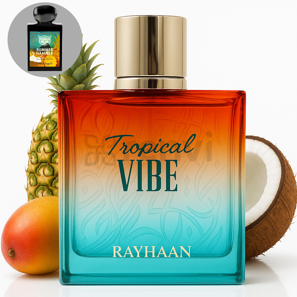 A Rayhaan Tropical Vibe egy napsütötte, jókedvű uniszex illat, amely a trópusi gyümölcsök lédús édességét friss, tengeri fuvallattal és krémes, napmeleg fás akkordokkal egyesíti. A nyitányban a mangó és az ananász egzotikuma szikrázó bergamottal kap lendületet, a szívben könnyed fehér virágok és egy tiszta „sea breeze” akkord ring kókuszos lehelettel. Ahogy ülepszik, borostyán, selymes szantál és puha pézsma simul a bőrre, finom vetiverrel tisztítva a lecsengést. Vidám, nyaralós karaktere miatt nappalra és meleg estére is remek választás, ha egy energiát adó, mégis kifinomult trópusi illatot keresel.