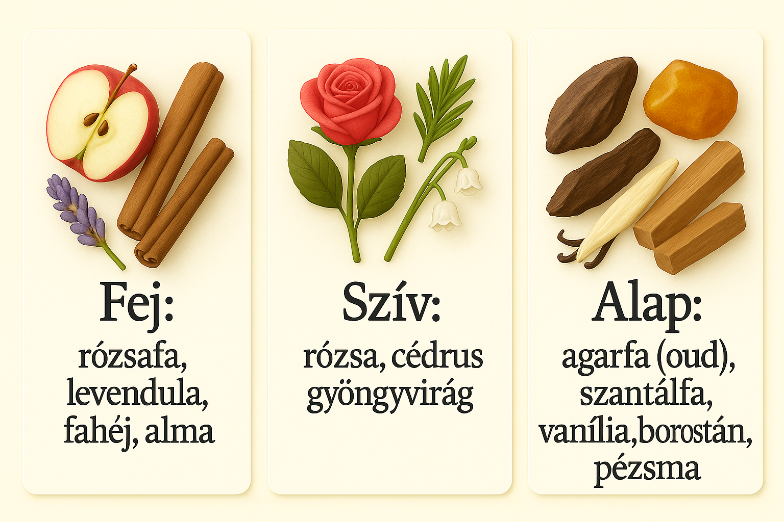 Fej: Alma, Fahéj, Levendula, Rózsafa