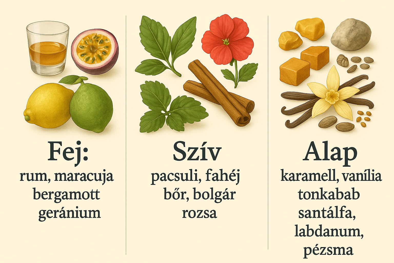 Alap: karamell, vanília, tonkabab, szantálfa, labdanum, ambergris, pézsma