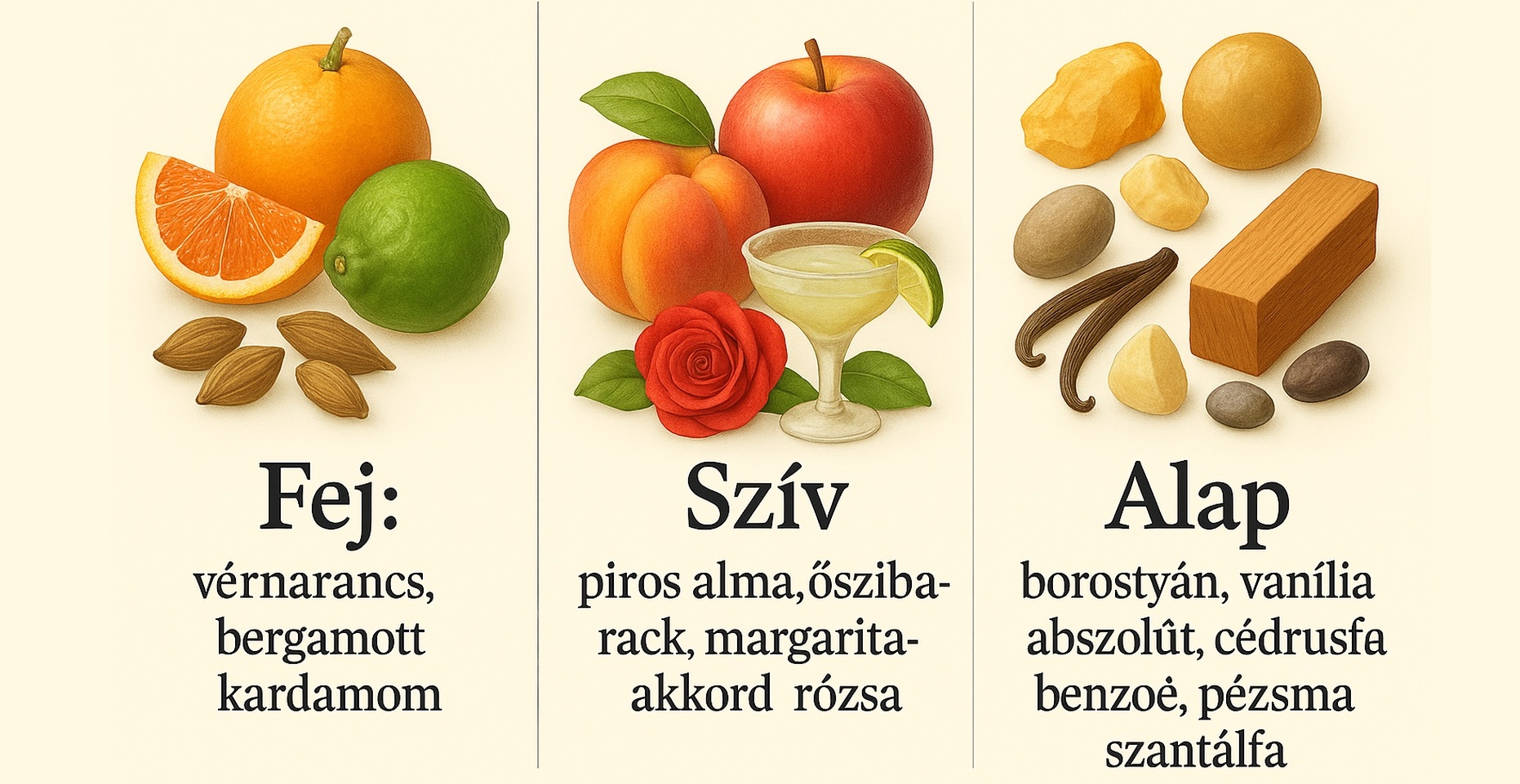 Alap Alap: borostyán, vanília abszolút, cédrusfa, benzoé, pézsma, szantálfa